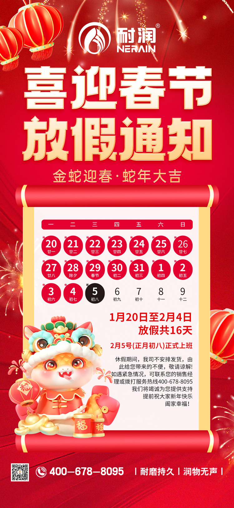 耐潤潤滑油2025年春節放假通知!