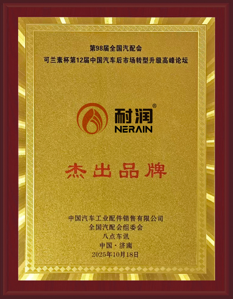 2025 年 10 月 18-20 日,第 98 屆全國汽車配件交易會在山東國際會展中心盛大啟幕,同期第 12 屆中國汽車后市場轉(zhuǎn)型升級高峰論壇同步召開。耐潤潤滑油憑借卓越的產(chǎn)品品質(zhì)、領(lǐng)先的技術(shù)實(shí)力、廣泛的市場認(rèn)可度以及持續(xù)的品牌影響力, 榮獲“杰出品牌”獎(jiǎng)項(xiàng)!