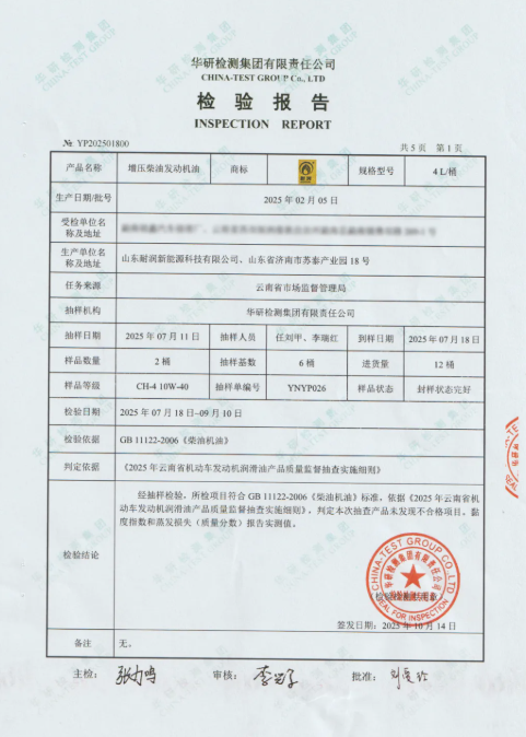 近日,在云南省市場監督管理局組織的質量監督抽查活動中,耐潤挑戰者V8全合成柴機油抽檢合格,再一次證明了耐潤潤滑油產品質量的穩定和性能的可靠。